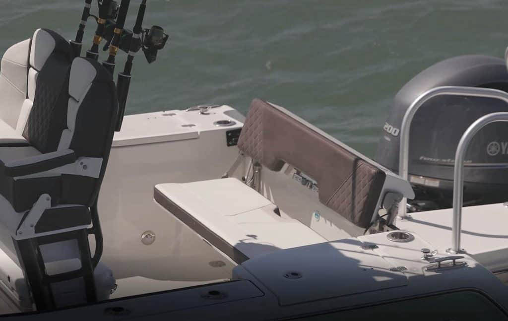● Full transom w/fold-down 50” bench seat convertible to flush, aft casting deck