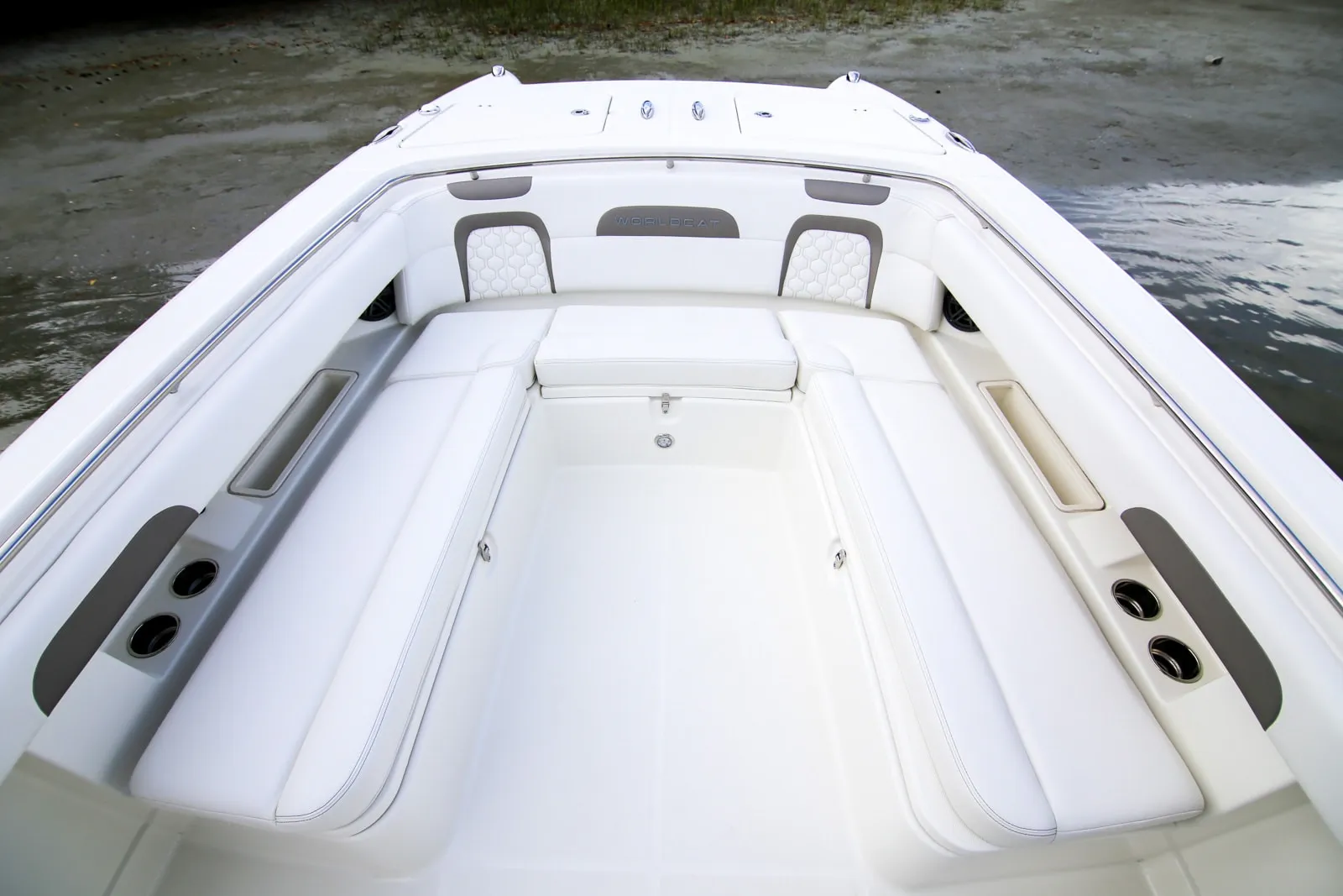 • Aggressive bow styling with integrated high-intensity LED docking lights, surrounding fascia, thru-hull anchor and World Cat lettering