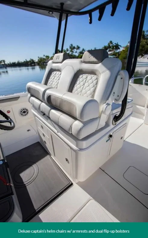 The 325CC is powered by twin outboard engines that ensure strong performance with excellent fuel efficiency, whether you're cruising along the coast or going for offshore fishing expeditions.