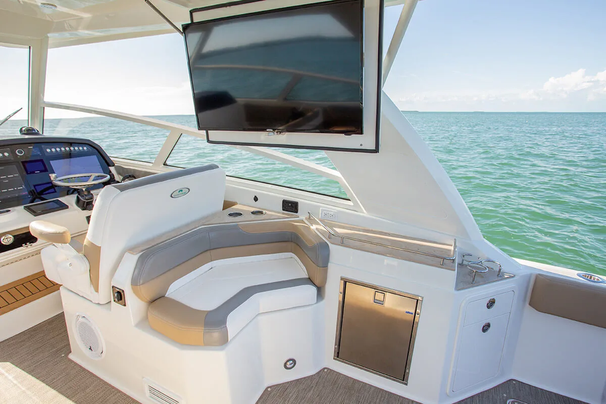 The 400DC-X is equipped with spacious seating, a fully functional galley, and a luxurious cabin with sleeping accommodations. Whether you’re out for a day of fishing or cruising with family and friends, this boat offers unmatched comfort and convenience.