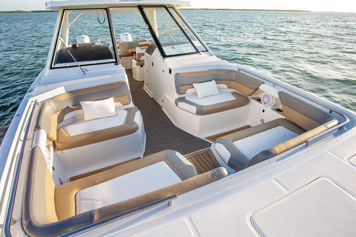 Thanks to its dual-hull design, the 400DC-X ensures an incredibly stable and smooth ride, even in rough seas. This makes it ideal for offshore boating and cruising along the Arabian Gulf.